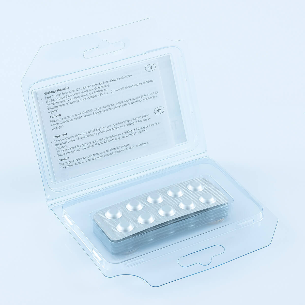 Their is no need to purchase a new kit when you are running low on tablets. Suitable for both the Compact Pool Test kit and Pooltester our refill pack contains enough tablets for 30 tests of each parameter: